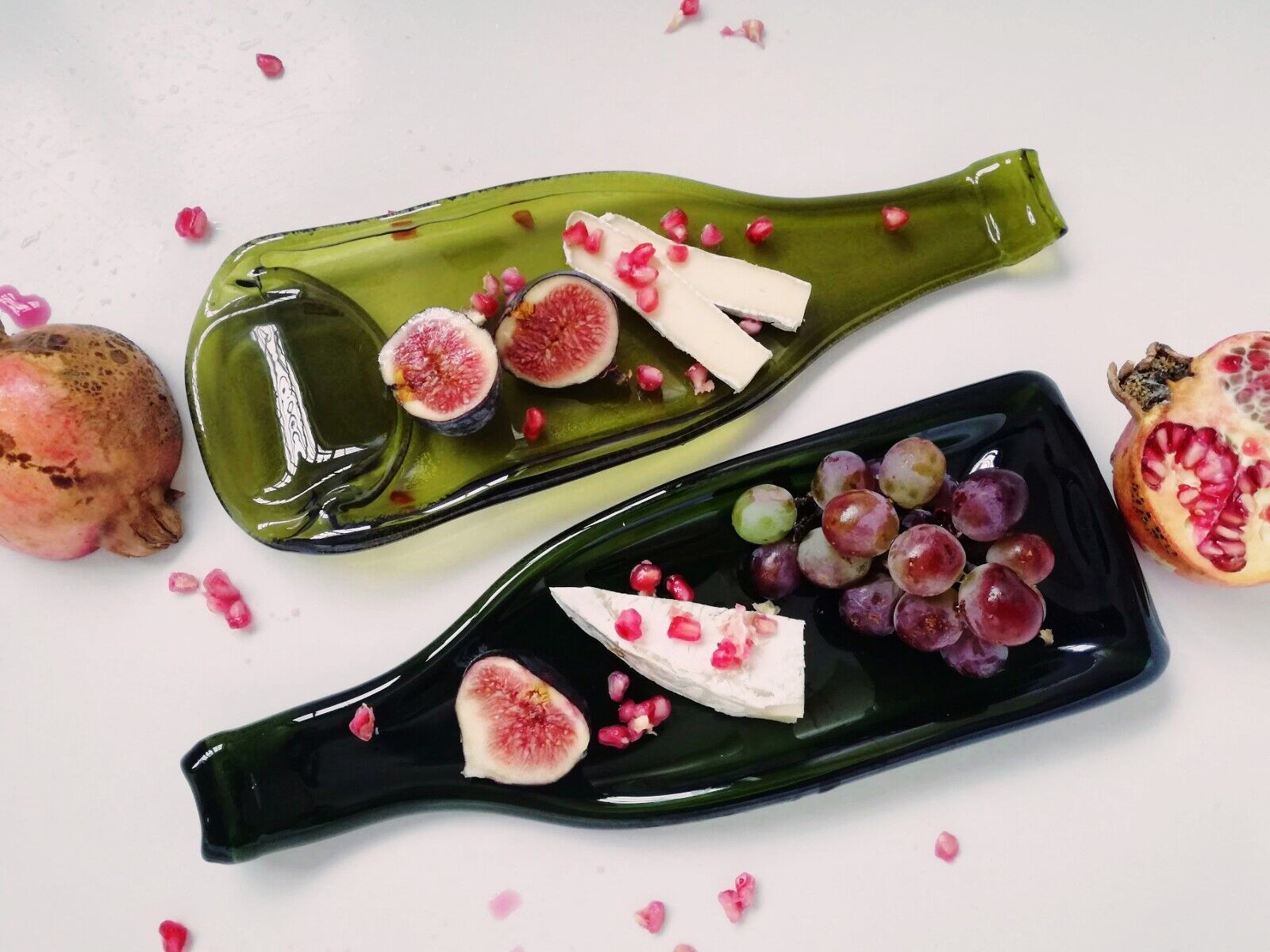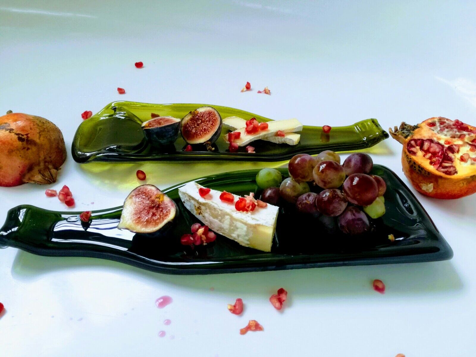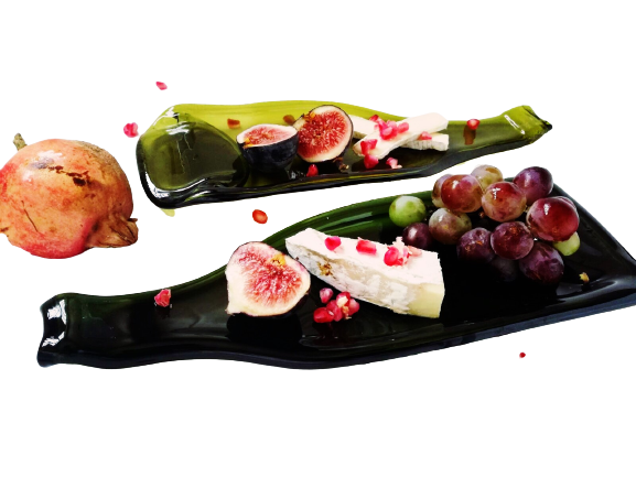 I used to be a wine bottle! We live in wine country and it is consumed at leisure on many occasions. With the result that wine bottles flood our waste bins. So we came up with a solution to re-purpose empty wine bottles into beautiful, usable food platters or spoon-rests.